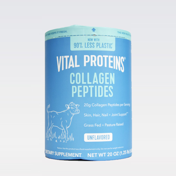Vital Proteins Collagen Peptides is a widely available option made in the USA using hydrolyzed collagen from grass-fed, pasture-raised bovine. The formula is unflavored making it simple to mix into coffee or smoothies.