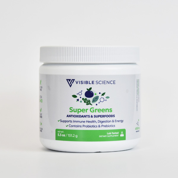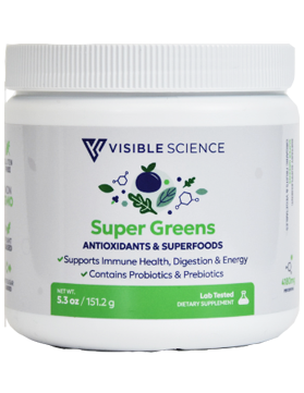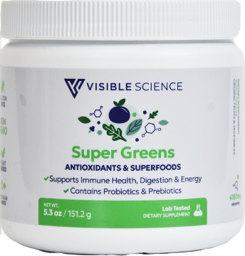 Visible Science Super Greens features 17 carefully selected organic superfoods prioritizing quality over quantity. Rather than 70+ ingredients in minimal amounts, this formula delivers meaningful quantities of nutrients typically missing from daily diets.