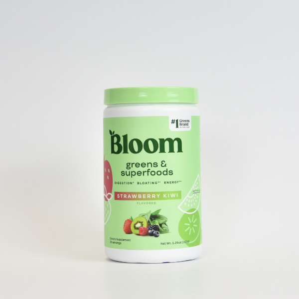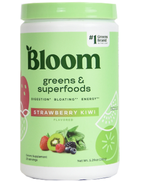 Bloom Greens and Superfoods offers basic green nutrition with probiotics, prebiotics, and adaptogens in a gluten-free formula.