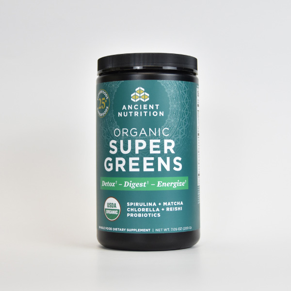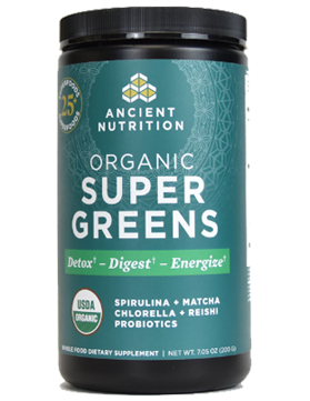 Ancient Nutrition Organic Supergreens provides 10 greens and vegetables including spirulina, chlorella, kale, and spinach. While focused formulas are preferable, 10 greens may be on the lower side for comprehensive coverage. The formula adds functional mushrooms, probiotics with digestive enzymes, and adaptogenic herbs using all organic ingredients for a complex multi blend approach.