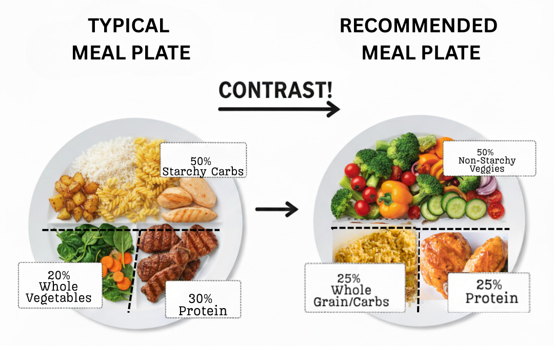 Even when we do include vegetables in our meals, they often represent just a small portion of what's on our plate. The USDA recommends that roughly 50% of your meal should come from fruits and vegetables, yet most typical dinners feature vegetables as a modest side dish rather than the main event.